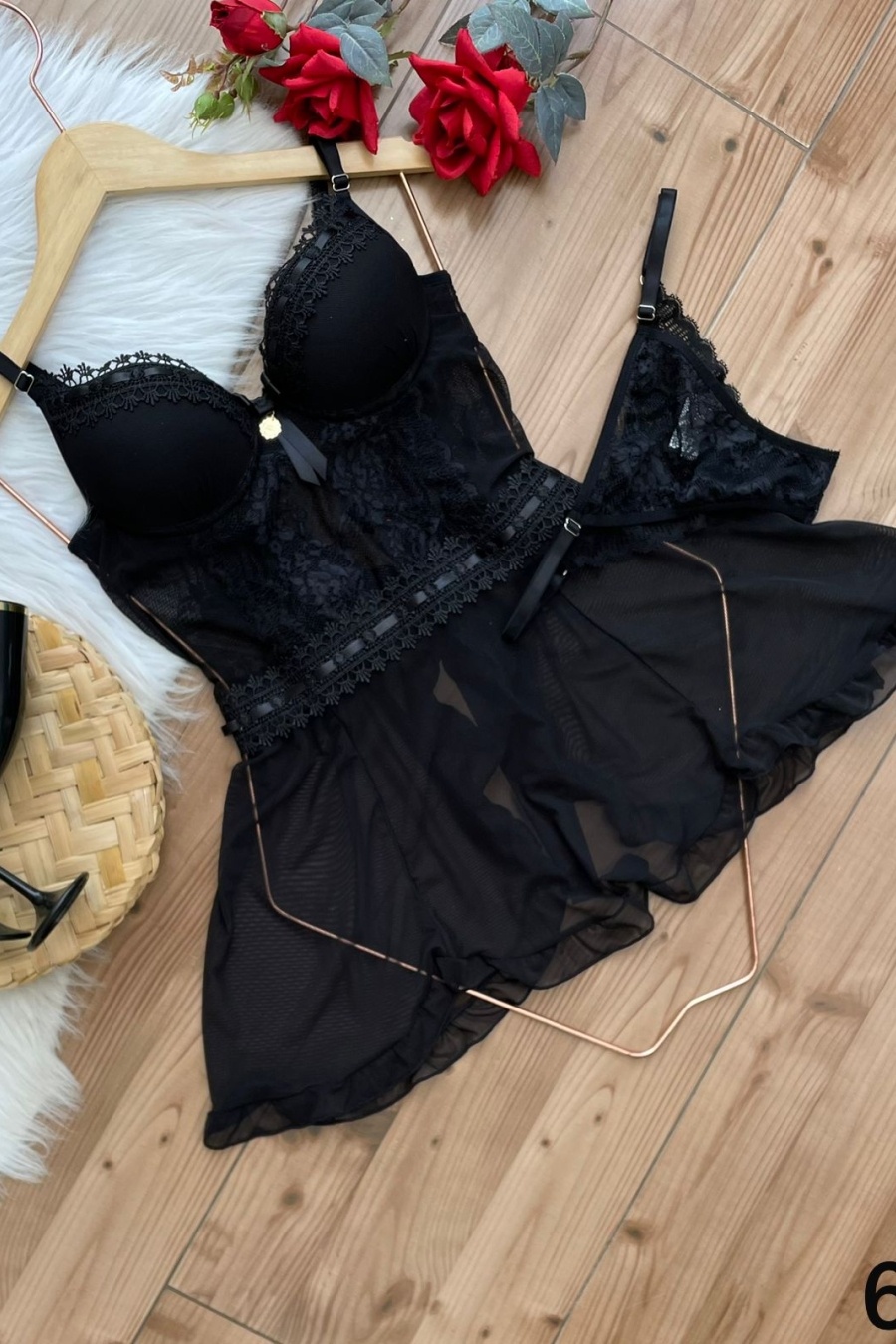 CAMISOLA EM TULE E RENDA COM DETALHES EM GUIPIR 6218
