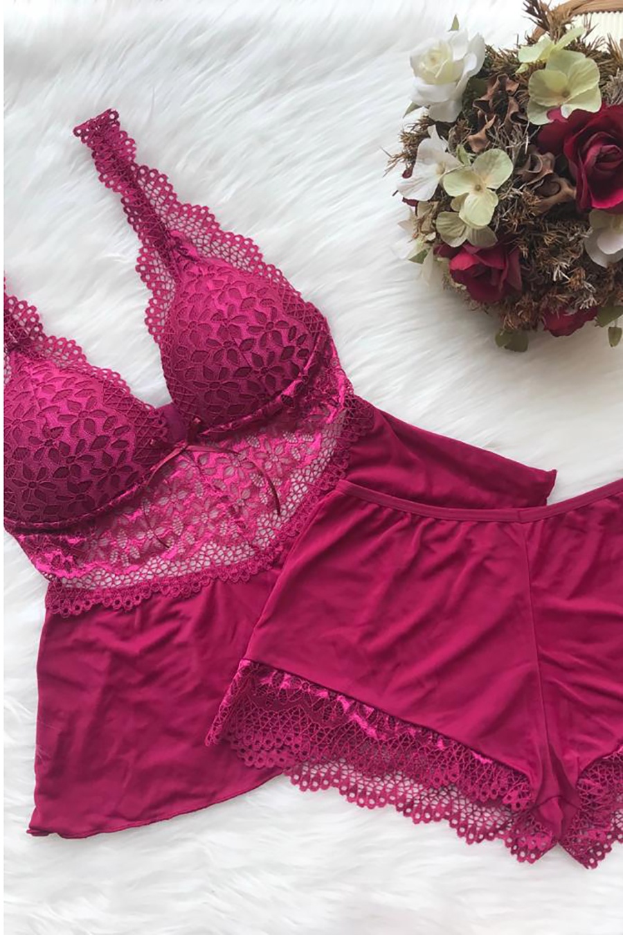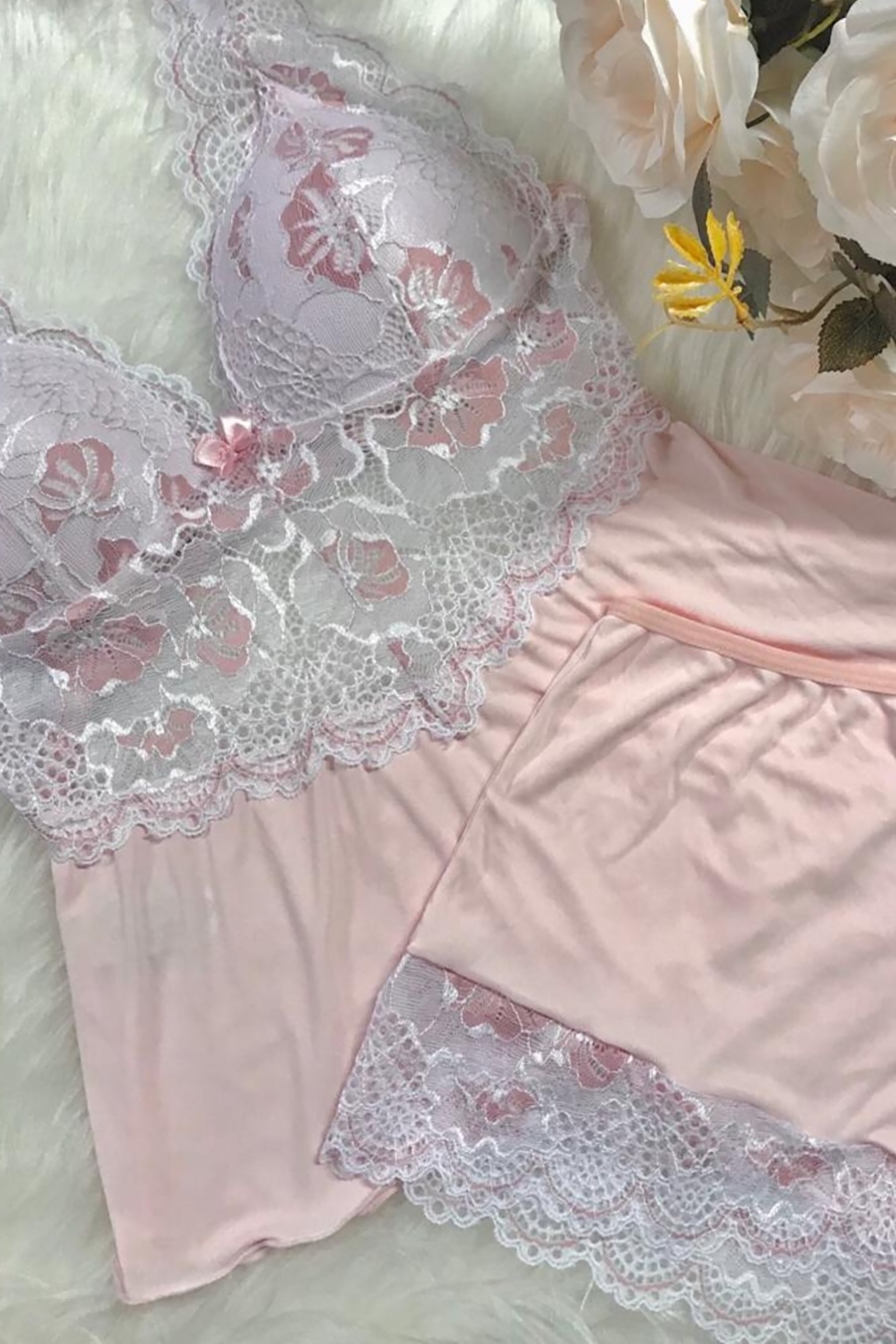 SHORT DOLL EM LIGANETE E RENDA COM BOJO GOTA, LAÇO E ALÇAS REGULÁVEIS 03157
