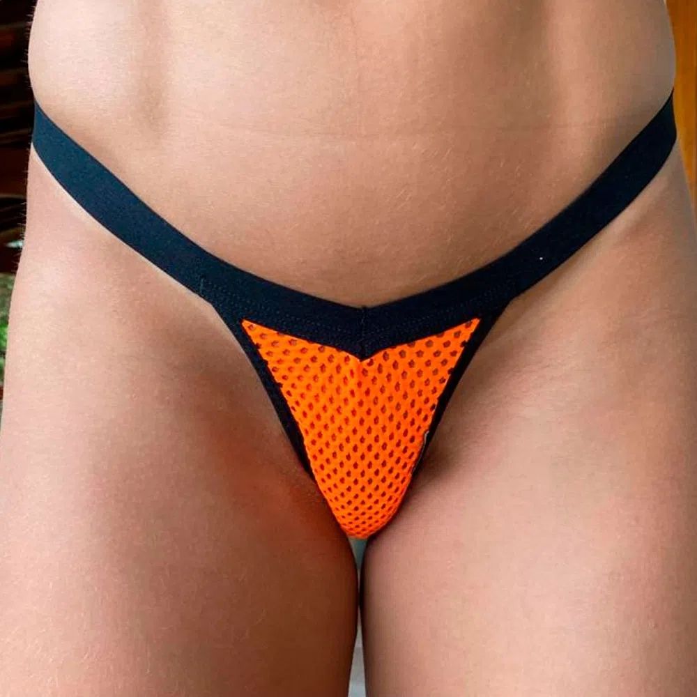 Calcinha fio dental em tecido furadinho, tipo arrastão.Cintura com regulagem. Peça com sensualidade, transparência e super na moda.